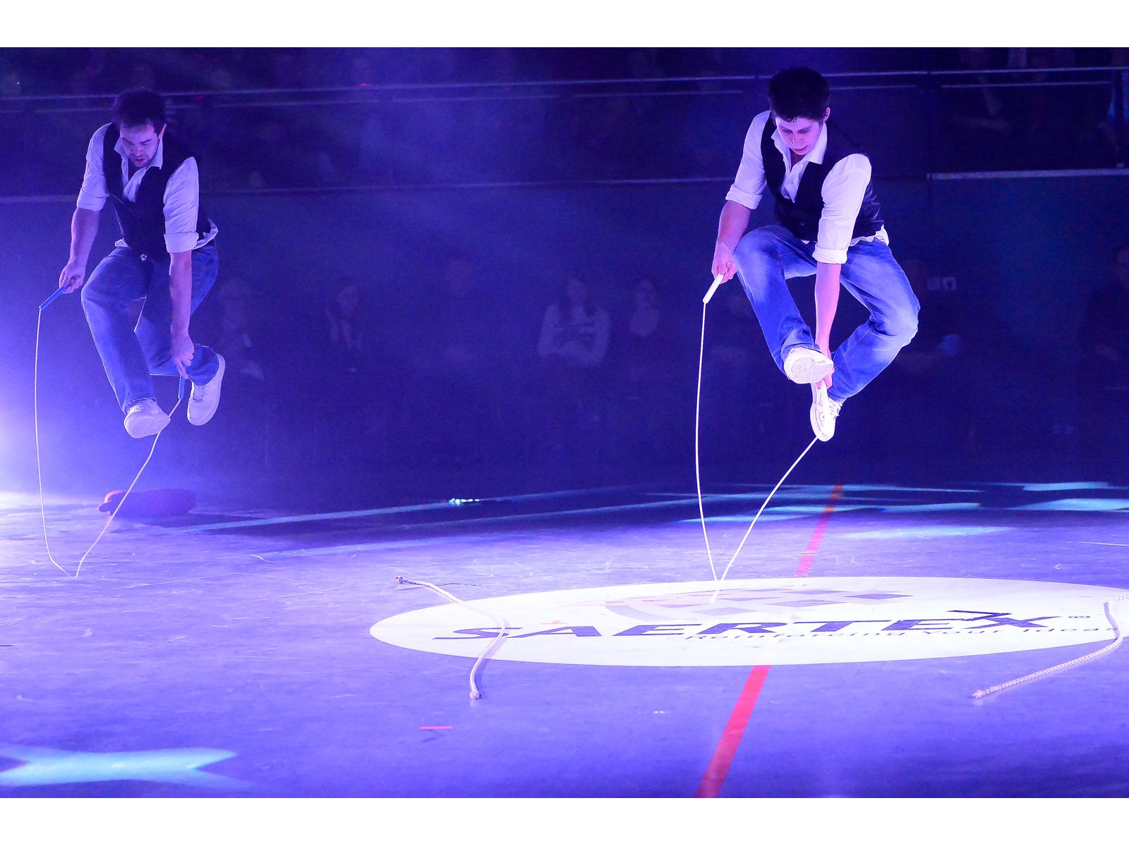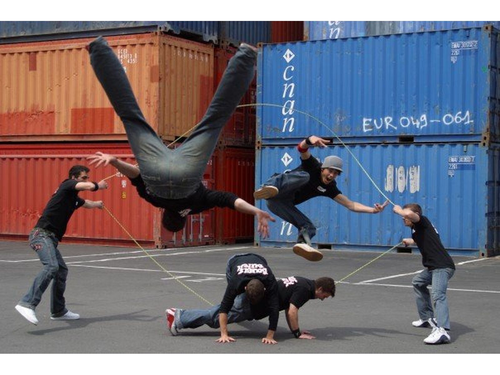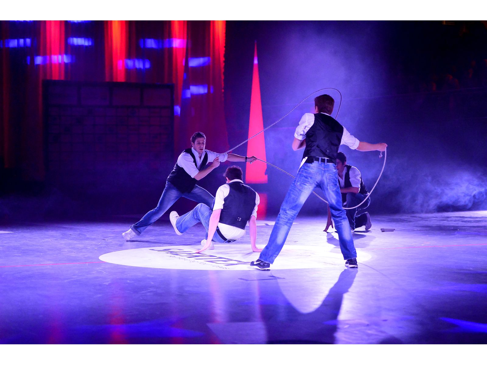 Les artistes acrobates-danseurs évoluent entre les cordes au rythme de la musique et la magie opère : la corde à sauter de notre enfance devient un show chorégraphié durant lequel les artistes rivalisent d’adresse et d’audace pour proposer les combinaisons les plus folles, à mi-chemin entre le Street-Dance et la performance physique de la corde à sauter !