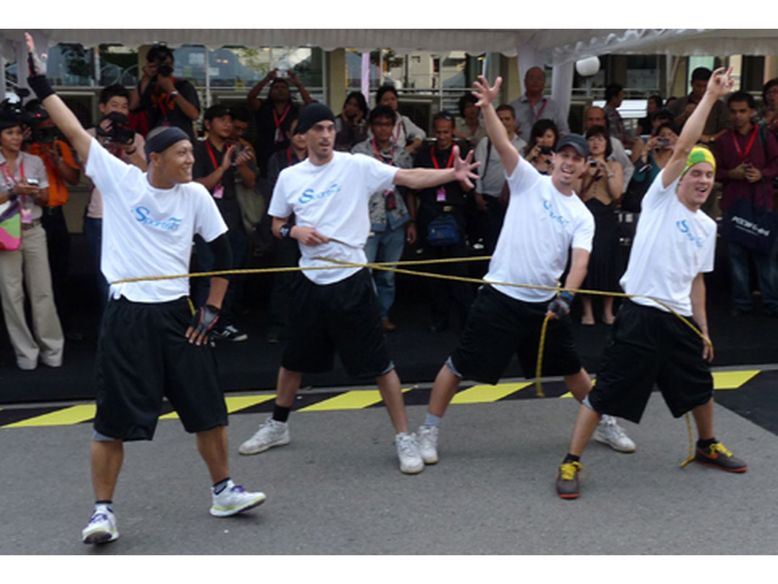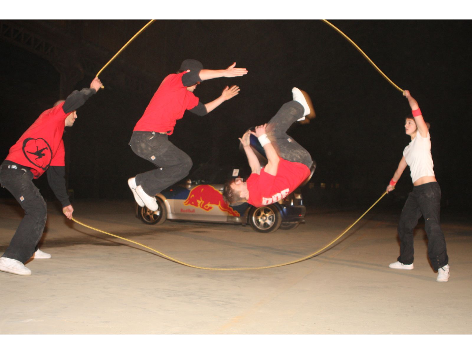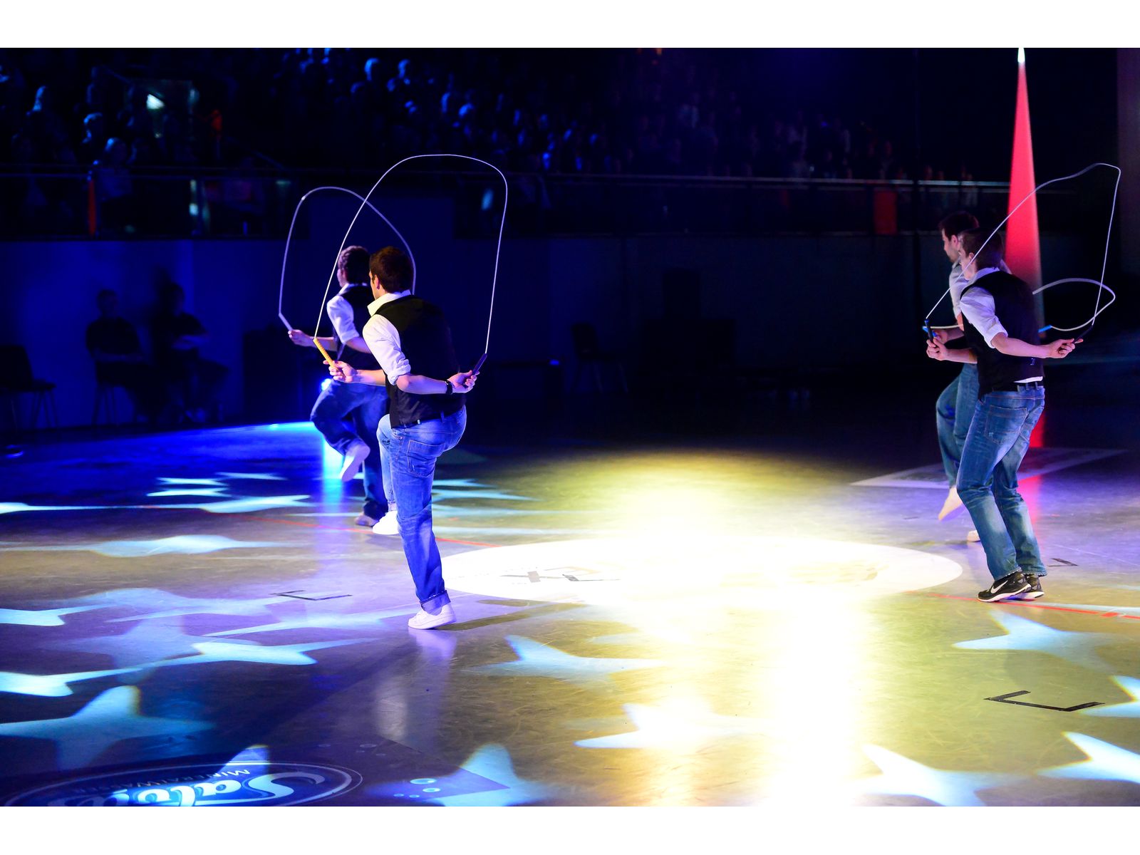 Les artistes acrobates-danseurs évoluent entre les cordes au rythme de la musique et la magie opère : la corde à sauter de notre enfance devient un show chorégraphié durant lequel les artistes rivalisent d’adresse et d’audace pour proposer les combinaisons les plus folles, à mi-chemin entre le Street-Dance et la performance physique de la corde à sauter !